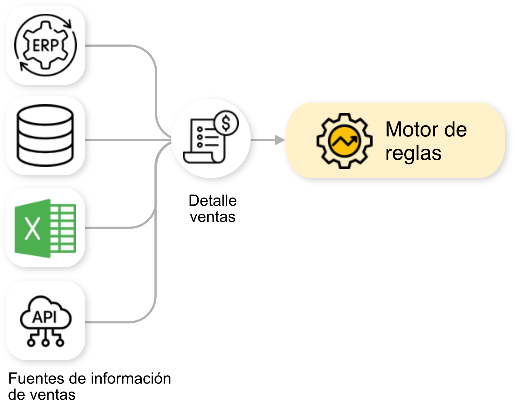 Nuestra plataforma puede integrarse, a través de APIs, con todo tipo de fuentes de información de ventas como sistemas ERP/CRM, puntos de venta, eCommerce y planillas de cálculo.