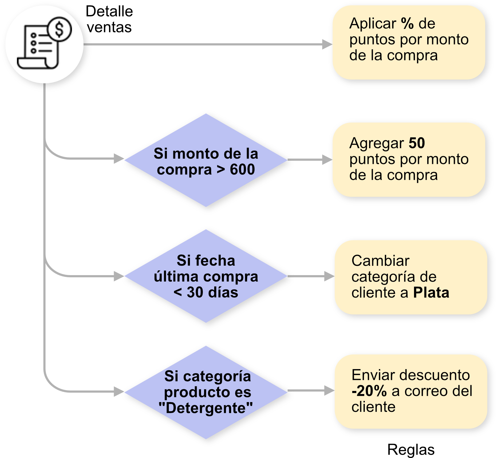 - Motor flexible: reglas múltiples de acumulación de puntos